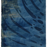 Deep indigo and lighter blue shades blend in this cyanotype, capturing the distinctive shape of a half Monstera leaf. The large leaf fills most of the composition, while subtle layers emerge gently from beneath, revealing fern details and fragments of tropical foliage. The gentle shifts in tone suggest the cyanotype was created through double exposure, adding a sense of quiet depth. The piece feels like a peaceful evening in a lush garden, with leaves softly outlined in fading twilight.