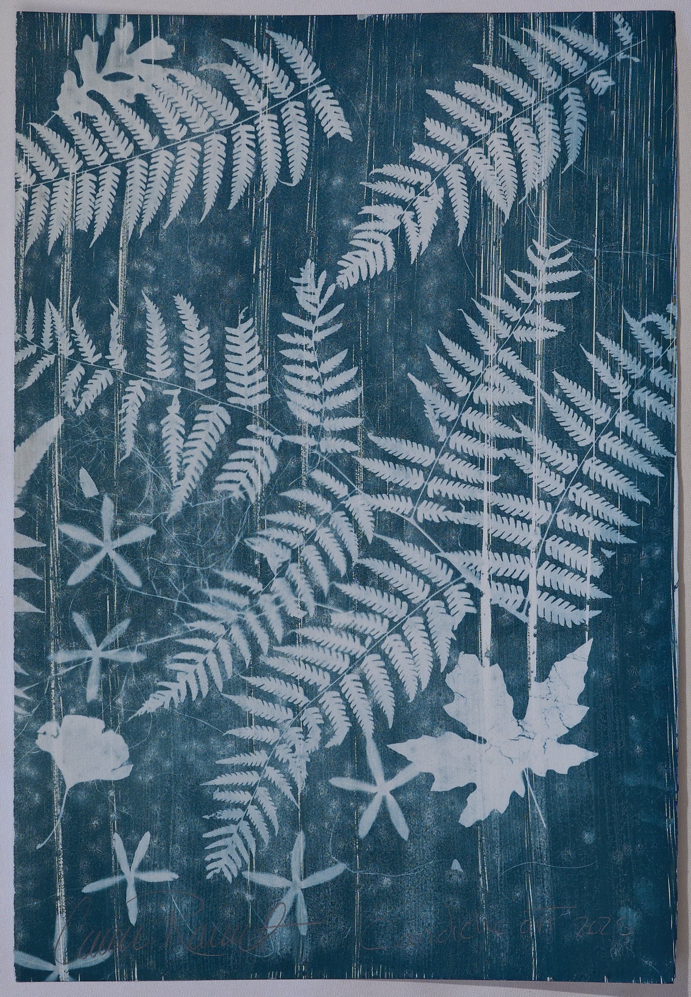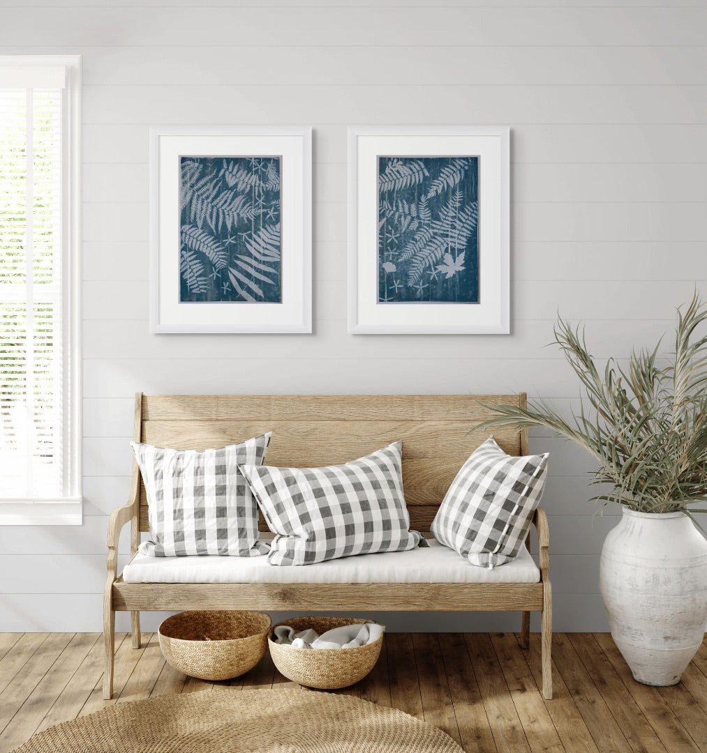 This cyanotype measures 15 x 22 inches and is created on high-quality watercolor paper. Each piece is handmade by me and completely one-of-a-kind. It comes unframed, allowing you to choose the perfect frame for your space.