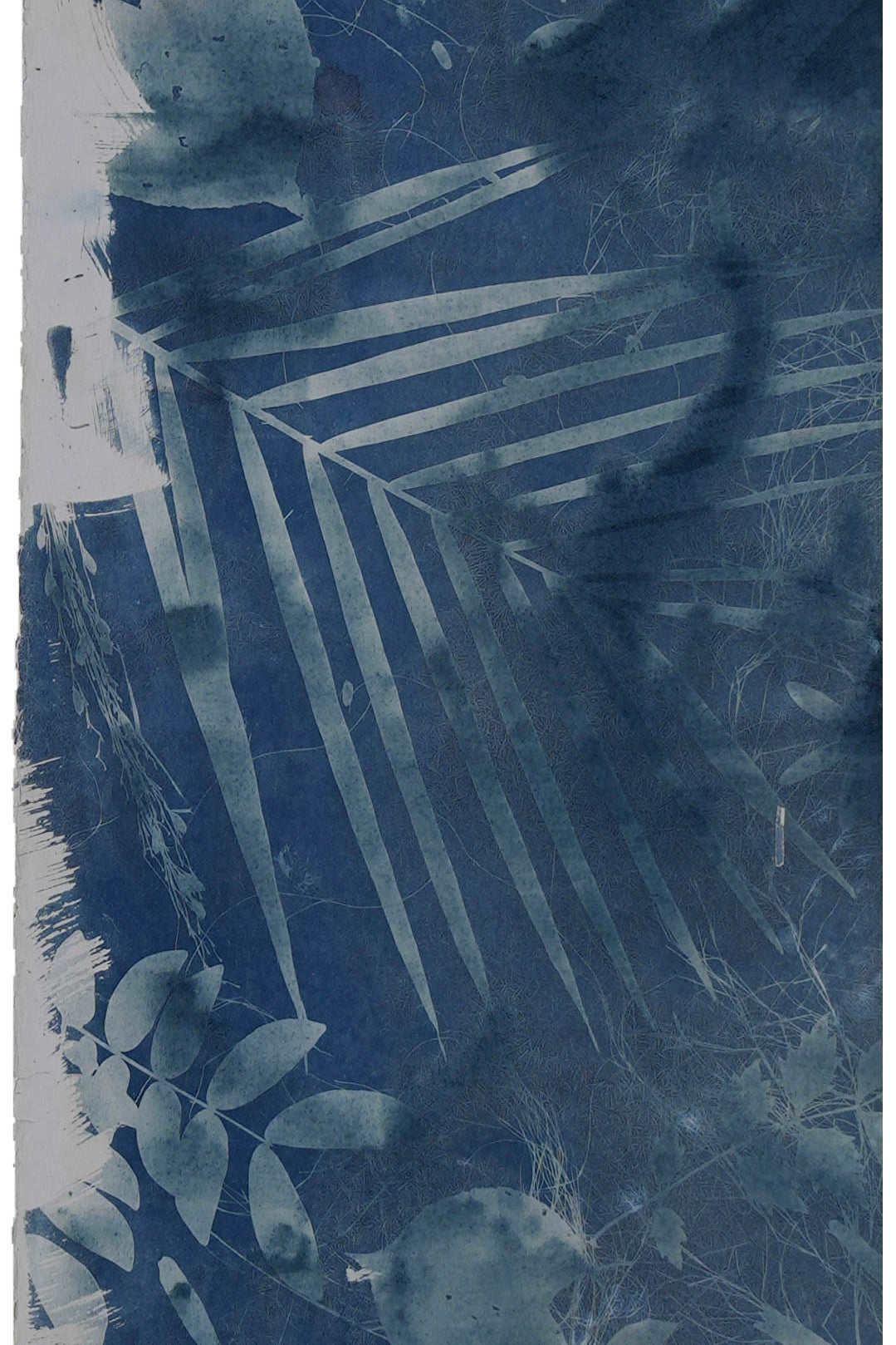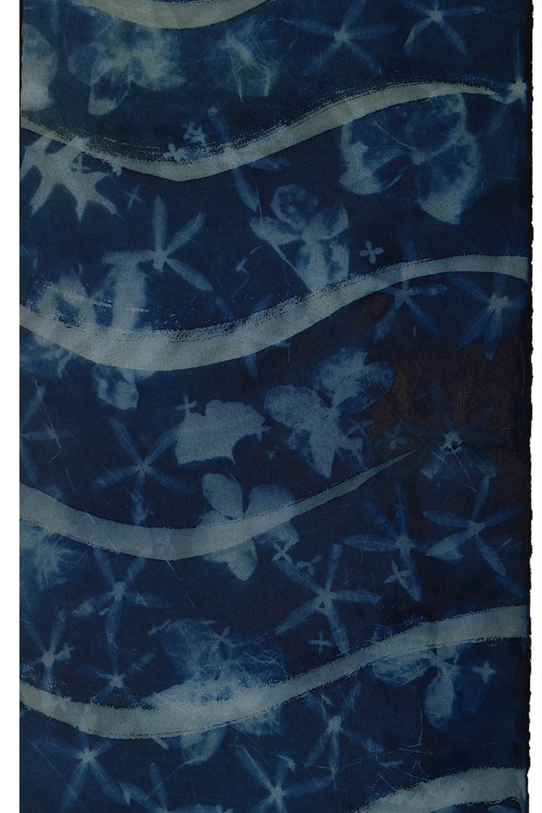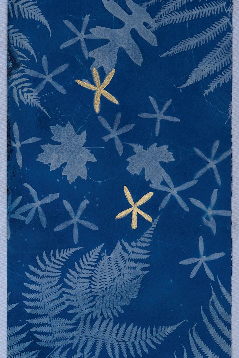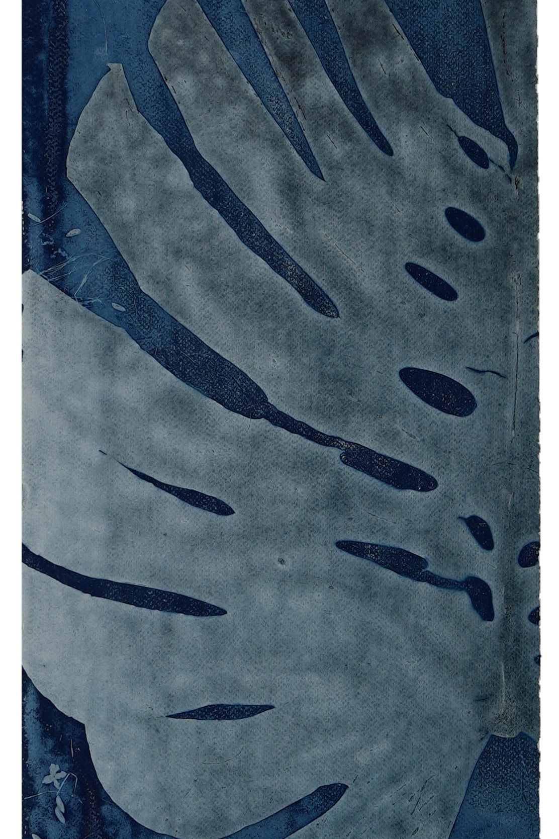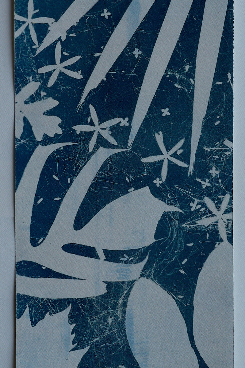 Elevate your living space with a touch of nature with this large-scale, 4 by 8 feet original cyanotype. Its deep blues and detailed leaf patterns bring a peaceful, natural vibe to any room. Designed to harmonize with modern decor, this artwork serves as a captivating centerpiece, infusing your home with a soothing tranquility.