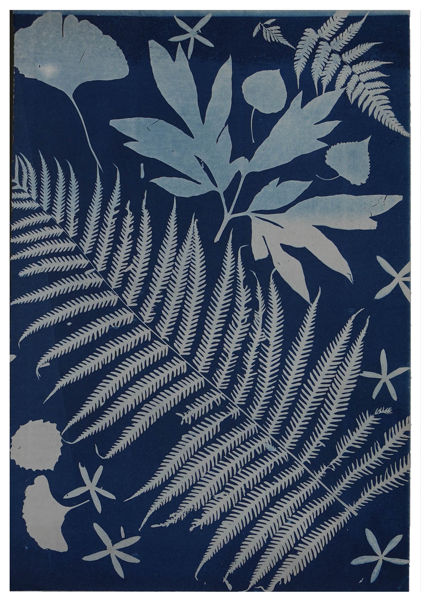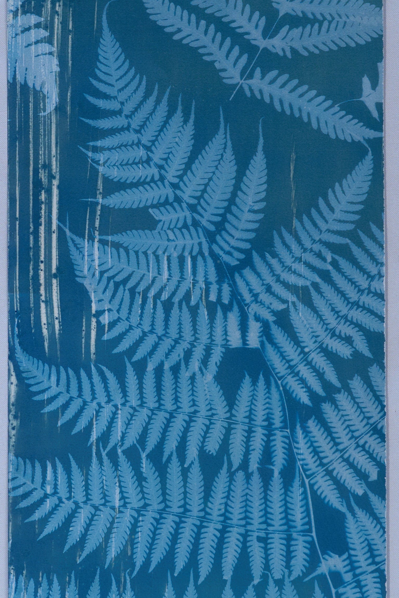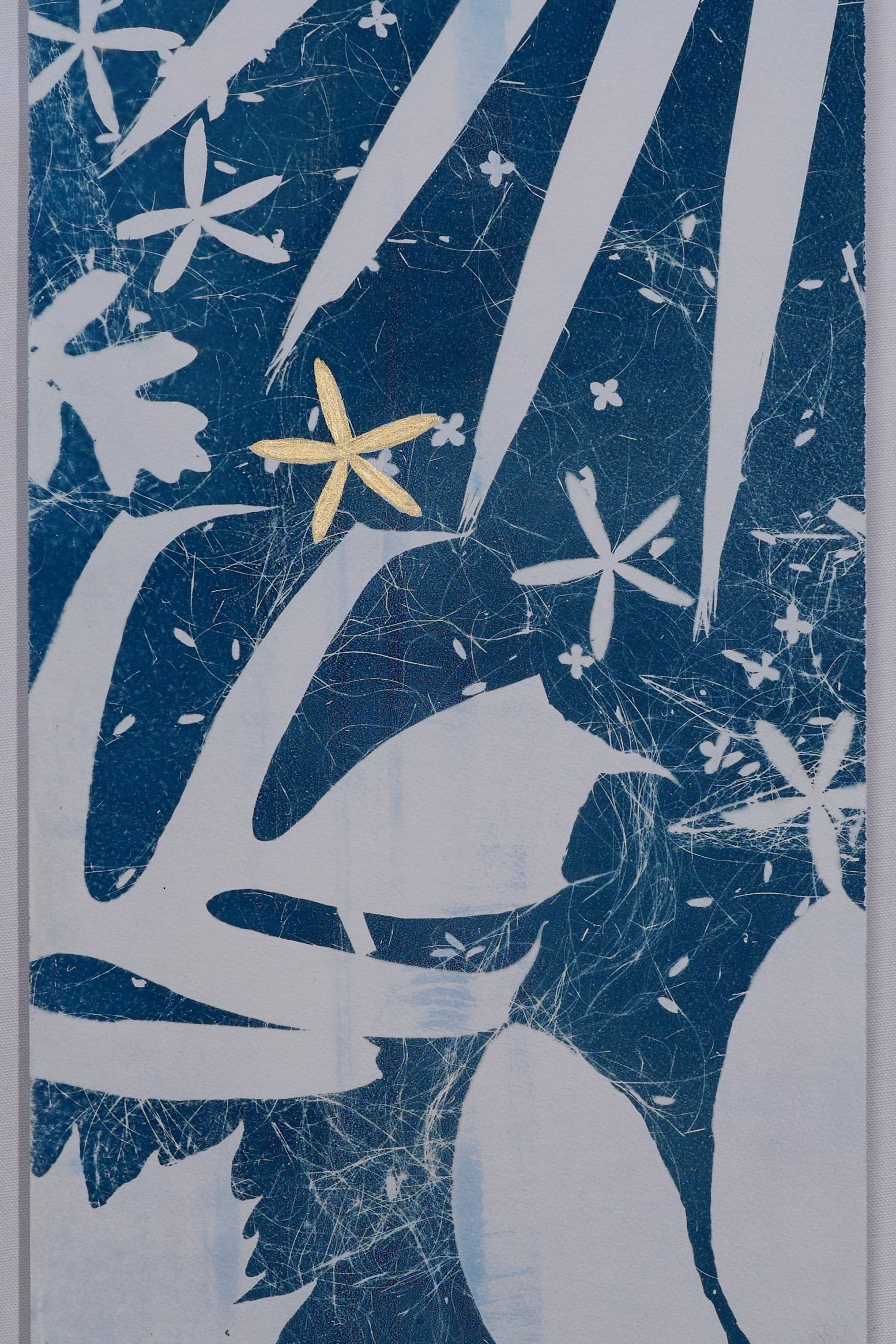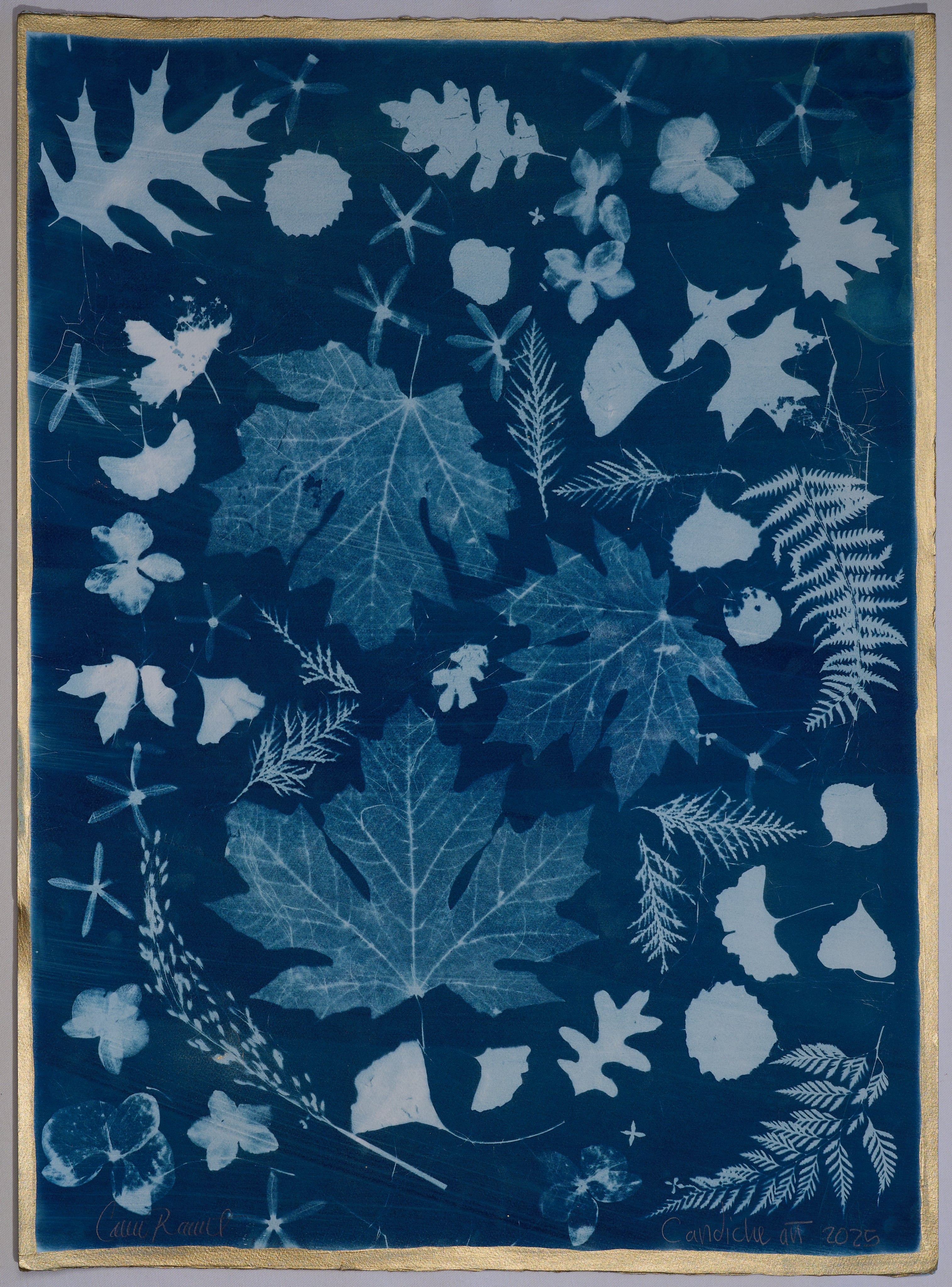 Elevate your living space with a touch of nature with this large-scale, 4 by 8 feet original cyanotype. Its deep blues and detailed leaf patterns bring a peaceful, natural vibe to any room. Designed to harmonize with modern decor, this artwork serves as a captivating centerpiece, infusing your home with a soothing tranquility.