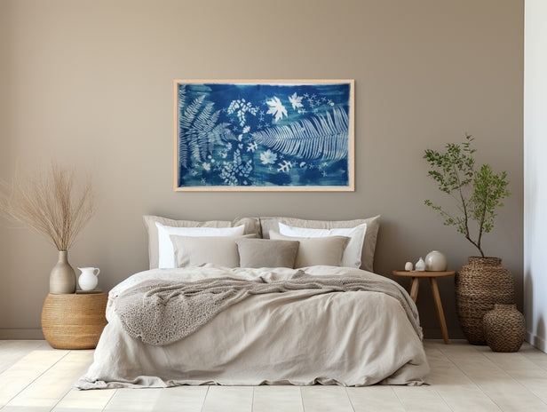 This piece measures 40x68 inches as a full sheet of cotton fabric. It will arrive unframed, giving you the freedom to stretch and frame it in a way that fits your space. Stretching the fabric around stretcher bars will slightly reduce the final dimensions, depending on the thickness of the bars, but only by a few inches. You can add a frame afterward if you'd like. I personally love using wood or a simple white frame, but it's completely up to your style.