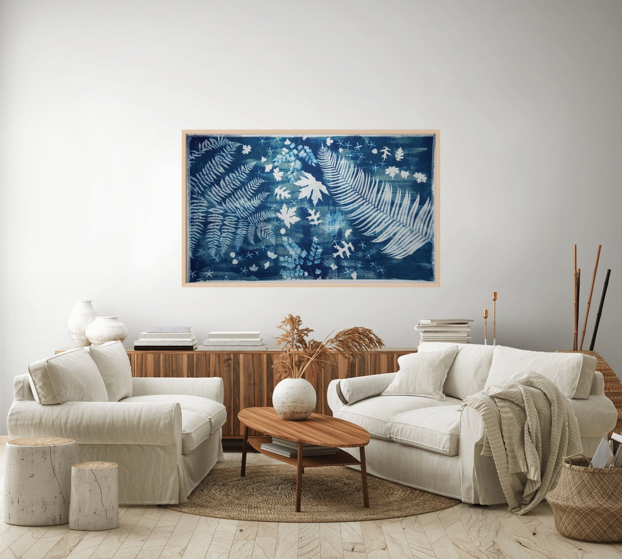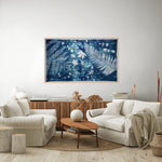 This piece measures 40x68 inches as a full sheet of cotton fabric. It will arrive unframed, giving you the freedom to stretch and frame it in a way that fits your space. Stretching the fabric around stretcher bars will slightly reduce the final dimensions, depending on the thickness of the bars, but only by a few inches. You can add a frame afterward if you'd like. I personally love using wood or a simple white frame, but it's completely up to your style.