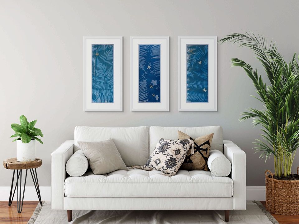 This cyanotype measures 11 x 30 inches and is created on high-quality watercolor paper. Each piece is handmade by me and completely one-of-a-kind. It comes unframed, allowing you to choose the perfect frame for your space.