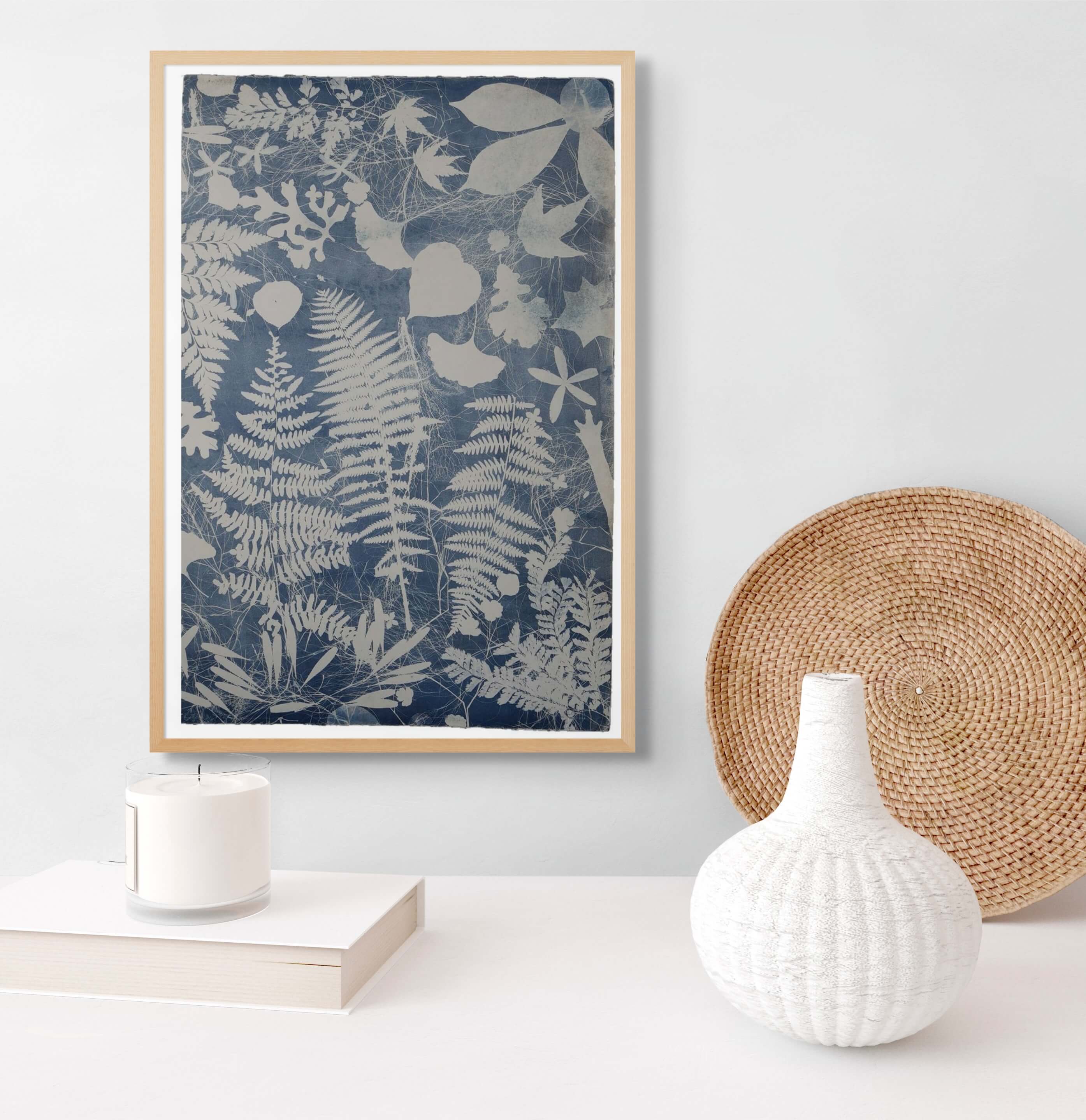 This cyanotype measures 15 x 22 inches and is created on high-quality watercolor paper. Each piece is handmade by me and completely one-of-a-kind. It comes unframed, allowing you to choose the perfect frame for your space.