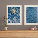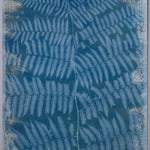 The way the ferns overlap creates a slow, steady rhythm, almost like they’re floating on calm water. The brushed edges and soft gradients add warmth and movement, making the whole cyanotype feel light, balanced, and full of quiet motion.