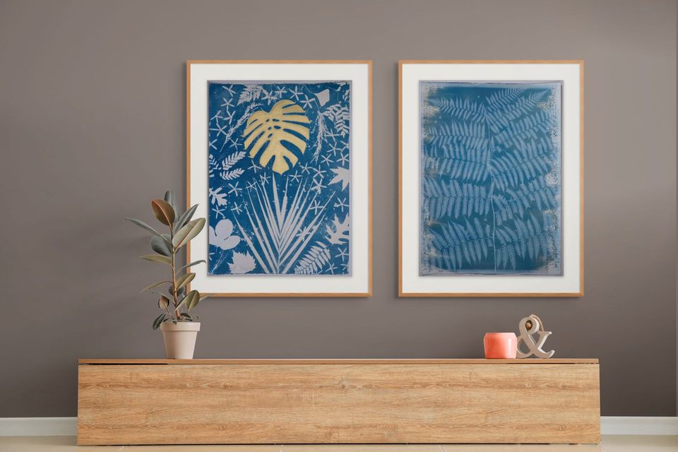 This cyanotype measures 22 x 30 inches and is created on high-quality watercolor paper. Each piece is handmade by me and completely one-of-a-kind. It comes unframed, allowing you to choose the perfect frame for your space.